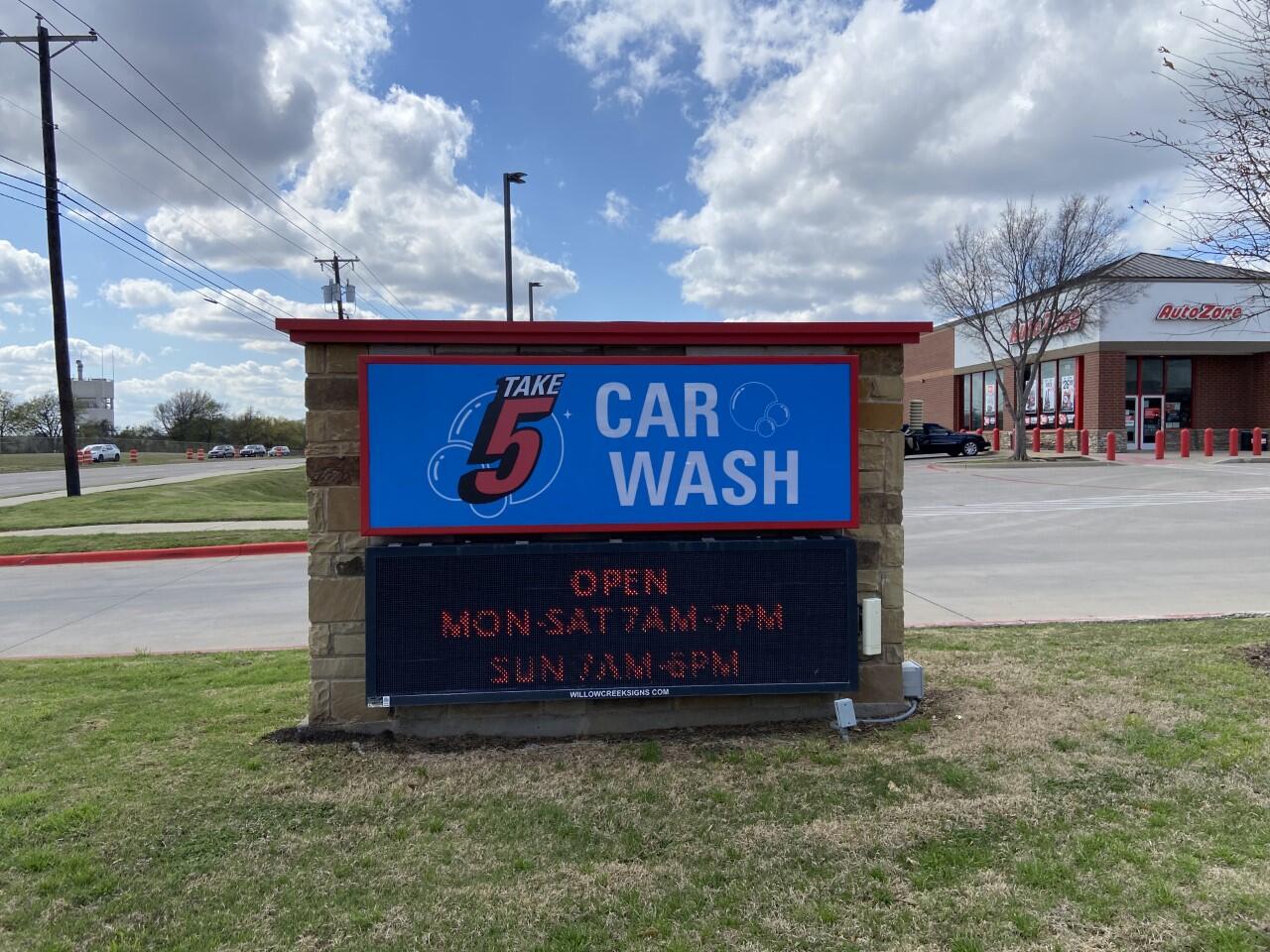Take 5 Car Wash is open Mon Tue Wed Thu Fri Sat Sun. Take 5 Car Wash. Take 5 Car Wash in McKinney Tx is your destination for premium exterior washes at affordable pricing.